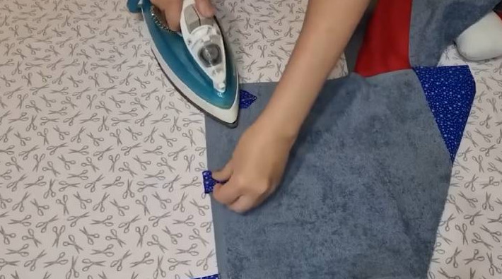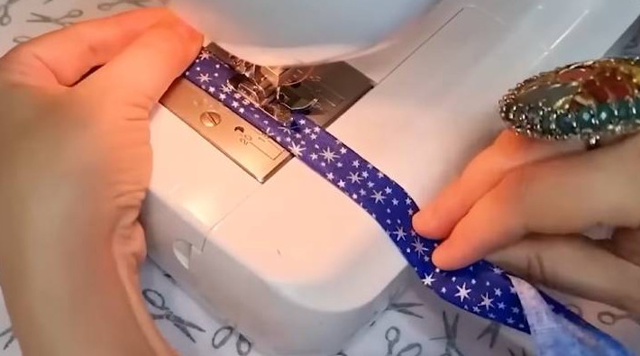 Сложите края к центру, прогладьте утюгом. Прошейте на машинке.