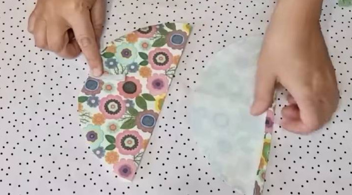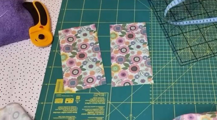 Подготовьте тонкую ткань + флизелин. Вырежьте 2 прямоугольника со сторонами 10*20 см. Приклейте флизелин к ткани через утюг.