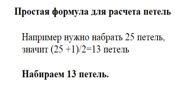Поскольку количество петель увеличивается, как же точно рассчитать, сколько нужно набрать первоначально? Всё очень просто! Например, вы знаете, что в итоговом изделии требуется 25 петель. Добавьте к ним 1 петлю, чтобы получилось чётное число. И теперь его разделите напополам! Следовательно, первоначально необходимо набрать 13 петель.