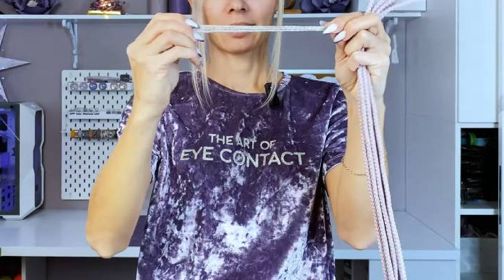 Дело осталось за малым! Подготовьте шнур 5 мм (с сердечником). Нарежьте его на 8 отрезков длиной 170 см. Разрежьте пополам, чтобы получилось 16 шт. У каждого шнура с обеих сторон вытащите сердечник на 15 см и обрежьте. Это нужно для того, чтобы основание ручки не утолщалось.