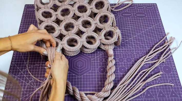 Возьмите кольца, предназначенные для карнизов, и обвяжите их шнуром с помощью крючка! Необыкновенно удачная и интересная идея, которую наверняка оценят представительницы слабого пола. Повторить совсем не трудно, хотя на работу и требуется некоторое время. Используйте кольца для штор не по прямому назначению! Feya Cords Макраме/youtube Обвязка колец Подготовьте 44 кольца для гардин и полиэфирный шнур 3 мм (без сердечника) крючок № 3. Сделайте первоначальную петлю, зафиксируйте крючок сверху кольца. Рабочую нить проденьте через кольцо наверх, заведите снизу вверх за крючок, сделайте накид. Затем выведите рабочую нить за кольцо, подхватите её крючком. Протяните через 2 петли. Feya Cords Макраме/youtube Таким же образом продолжайте вязать по кругу, пока не заполните всё кольцо. В конце обрежьте нить и спрячьте в вязании. Feya Cords Макраме/youtube Сборка деталей Итак, обвяжите 44 кольца способом, указанным выше. Из них 32 уйдут на переднюю и заднюю детали (по 16 шт. каждая), а оставшиеся 12 — на боковые детали и дно (по 4 шт. каждая). Более наглядно можно увидеть на фото ниже: Feya Cords Макраме/youtube Подберите нитку в тон шнуру. Соедините кольца в детали, как указано выше, и сшейте вручную иглой. Feya Cords Макраме/youtube Дополнительно детали декорируйте отрезом шнура примерно 37 см. Сразу определите, где будет изнаночная сторона колец, и там прячьте узелки. Feya Cords Макраме/youtube Наконец, сшитые и декорированные детали из колец соберите воедино. Сшивать нужно также вручную и декорировать шнуром. Feya Cords Макраме/youtube Ручки из шнура Дело осталось за малым! Подготовьте шнур 5 мм (с сердечником). Нарежьте его на 8 отрезков длиной 170 см. Разрежьте пополам, чтобы получилось 16 шт. У каждого шнура с обеих сторон вытащите сердечник на 15 см и обрежьте. Это нужно для того, чтобы основание ручки не утолщалось. Feya Cords Макраме/youtube Все шнуры перекиньте через крайнее кольцо. Разровняйте, чтобы они не перекручивались. Feya Cords Макраме/youtube Теперь возьмите ещё 2 шнура 5 мм по 60 см (заранее уберите сердечник). Одним шнуром оберните все отрезки, плотно зафиксировав. Лишнее обрежьте, подпалите зажигалкой и спрячьте. Feya Cords Макраме/youtube Теперь шнуры разделите напополам (по 8 шт.) и заверните вправо. После этого перекрутите две половинки между собой, но уже влево. Таким образом, получится красивая ручка! Доведите до противоположного крайнего кольца и с помощью второго шнура 60 см зафиксируйте. Аналогичным образом сделайте вторую ручку! Feya Cords Макраме/youtube Для внутренней части ещё понадобится сшить простой чехол по типу мешочка. И сумочка будет завершена! Feya Cords Макраме/youtube Красивая, стильная, удобная, с плотными ручками. И не догадаться, что сделана она из колец для карнизов! Обязательно берите на заметку столь удачную идею.