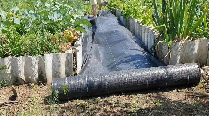 Застилать дорожку будем агротканью. Она пропускает воздух, но сдерживает рост сорняков.