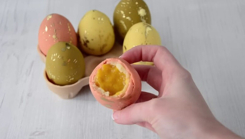 Помимо традиционных пасхальных куличей к празднику можно приготовить оригинальные пирожные в форме пасхальных яиц. Маленькие пирожные можно использовать как декор для куличей, а большие пирожные с начинкой станут прекрасным десертом или даже выступят в качестве приятного подарка. Yuliya Small/youtube Для 8 больших яиц с начинкой и 12 маленьких яиц потребуются следующие ингредиенты: Бисквит: 3 яйца; щепотка соли; 90 гр сахара; 90 гр муки. Начинка: 300 гр пюре манго; 5 гр крахмала (если пюре жидкое). Для оформления: 200 гр шоколада; 20-30 гр какао-масла; 2-3 гр какао-масла микрио. Приготовление бисквита Взбейте яйца с щепоткой соли и сахаром до получения пышной светлой массы. Введите просеянную муку и замесите бисквитное тесто. Приготовьте бисквит в форме или на противне. Готовый бисквит превратите в мелкую крошку. Yuliya Small/youtube Формовка пирожных Добавьте к бисквитной крошке столовую ложку творожного сыра, маскарпоне или мягкого творога. Необходимо получить упругую массу, из которой будет удобно формовать пирожные. Yuliya Small/youtube Для приготовления маленьких декоративных яиц потребует по 10 грамм бисквитной массы. Сформуйте заготовки, по форме напоминающие яйца. Воткните в заготовки зубочистки и поместите их в холодильник на час. Yuliya Small/youtube Приготовление начинки Большие пирожные можно приготовить с начинкой, которая будет имитировать желток настоящего яйца. Для приготовления начинки заморозьте пюре манго в небольших полусферах (если пюре жидкое, к нему можно добавить небольшое количество крахмала). Yuliya Small/youtube Замерзшие полусферы слегка прогрейте феном и соедините попарно, чтобы получить круглую заготовку. Еще раз заморозьте круглые заготовки. Yuliya Small/youtube 60 грамм бисквитной массы разомните в руках и превратите в лепешку. Внутрь лепешки поместите начинку. Накройте начинку бисквитной массой и сформуйте большое яйцо. Воткните в пирожные деревянные шпажки и уберите их в холодильник. Yuliya Small/youtube Оформление пирожных Растопите белый шоколад в микроволновой печи или на водяной бане. Белый шоколад имеет довольно густую консистенцию, поэтому чтобы с ним было удобно работать, добавьте растопленное масло какао. Добавьте к шоколаду жирорастворимый краситель желаемого цвета. Совет: рекомендуем сначала добавить желтый краситель, потом красный, а затем зеленый. Так получится три приятных оттенка шоколада для оформления пирожных. Yuliya Small/youtube Чтобы шоколад не таял в руках, был блестящим и хрустящим, его следует протемперировать. В домашних условиях сделать это проще всего с помощью какао-масло микрио. Введите какао-масло микрио в шоколад, охлажденный до температуры 32 градуса, и хорошо перемешайте. Yuliya Small/youtube Перелейте шоколад в высокий стакан. Окунайте охлажденные пирожные в шоколад. Используйте подставку из пенопласта, чтобы удобно разместить пирожные в шоколаде. Yuliya Small/youtube Совет: чтобы поддерживать шоколад в рабочей температуре, слегка нагревайте его обычным феном для волос. Yuliya Small/youtube Для оформления пирожных можно использовать пищевой кандурин, соединенный с небольшим количеством спирта. При наличии специальной формы для пирожных можно сделать подставку из шоколада. Пирожные-пасхальные яйца выглядят очень эффектно. Yuliya Small/youtube