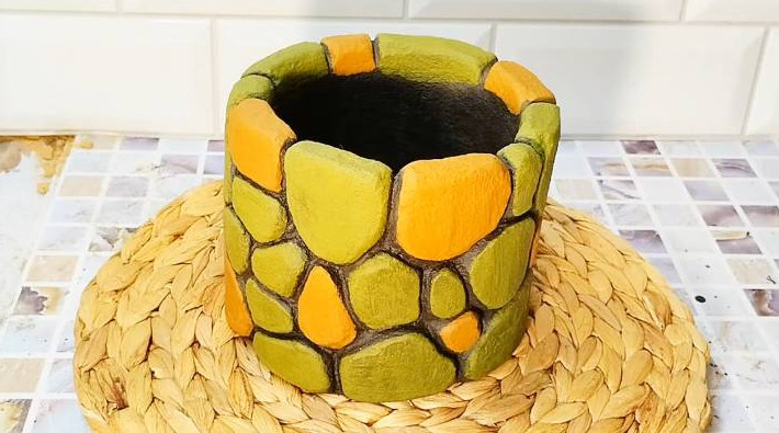 Взгляните на эту рукотворную красоту! Её сможет сделать абсолютно каждый человек. Это нетрудно, но очень интересно! Небольшой горшок для цветов из цемента с имитацией натурального камня — то, что нужно каждому садоводу! Можно увеличить объём и сделать полноценный вазон для участка. ПОДЕЛКИ ИЗ ЦЕМЕНТА/youtube Материалы и инструменты: цемент; песок; пластиковое ведёрко; мастихин; акриловая краска; клей ПВА. Техника лепки Рабочую поверхность застелите плёнкой. Цемент смешайте с песком в пропорции 1:2. Добавьте немного воды, замесите густой раствор. Сформируйте дно. В центр положите крышку от пластиковой бутылки. ПОДЕЛКИ ИЗ ЦЕМЕНТА/youtube Пластиковое ведёрко наполните влажным песком. Утрамбуйте. Переверните и поставьте на дно из цемента. Уберите ведёрко. ПОДЕЛКИ ИЗ ЦЕМЕНТА/youtube Цементно-песчаный раствор разведите водой, чтобы он стал жиже. Вылейте на песок. Разровняйте удобным инструментом. Жидкий раствор очень быстро схватывается. А потому через короткое время можно добавить полноценный слой (1 см) уже густого цементно-песчаного раствора. Сразу срежьте верхушку. Форма под горшок готова! Оставьте на 2 часа. ПОДЕЛКИ ИЗ ЦЕМЕНТА/youtube Имитация камня Мастихином или любым другим удобным инструментом вырежьте рисунок камня. Кисточкой смахните остатки смеси. ПОДЕЛКИ ИЗ ЦЕМЕНТА/youtube Оставьте на сутки. После этого можно удалить песок, крышку из дна и приступать к покраске! ПОДЕЛКИ ИЗ ЦЕМЕНТА/youtube Покройте поделку сначала коричневой акриловой краской. Через некоторое время покрасьте камни в желаемый цвет. Вместо дорогого акрилового лака воспользуйтесь обыкновенным клеем ПВА. Он создаёт отличное защитное покрытие. ПОДЕЛКИ ИЗ ЦЕМЕНТА/youtube Наполните горшочек землей и высадите цветы. Такой же вазон, но уже большего объёма, можно сделать для своего участка! Это совершенно не сложно и увлекательно.