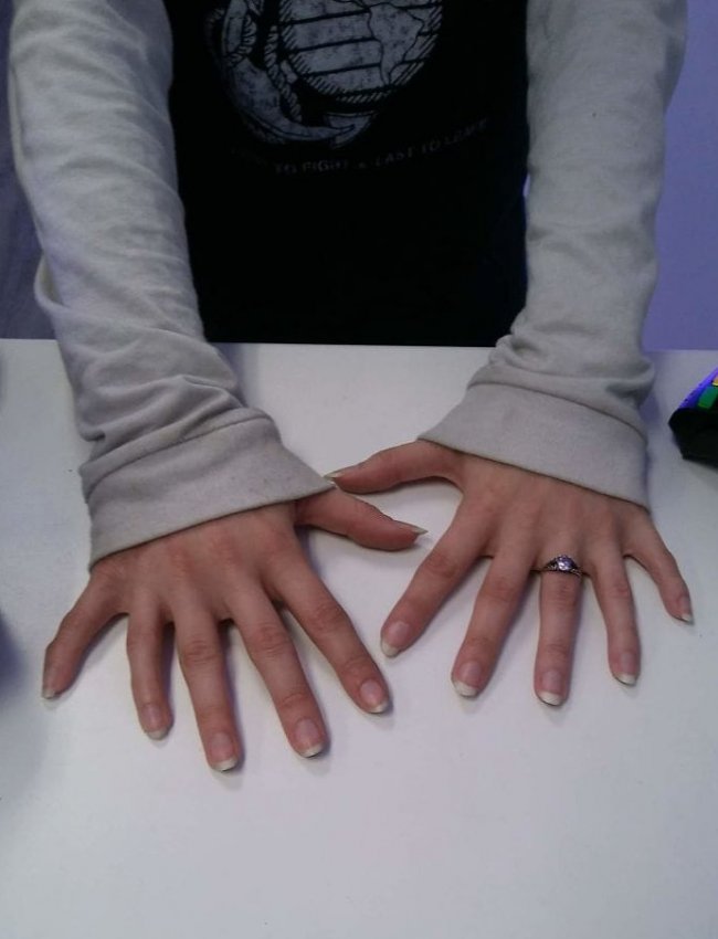 Клиентка пришла на маникюр и разрешила сфотографировать ее руки, на каждой из которых было по 6 пальцев