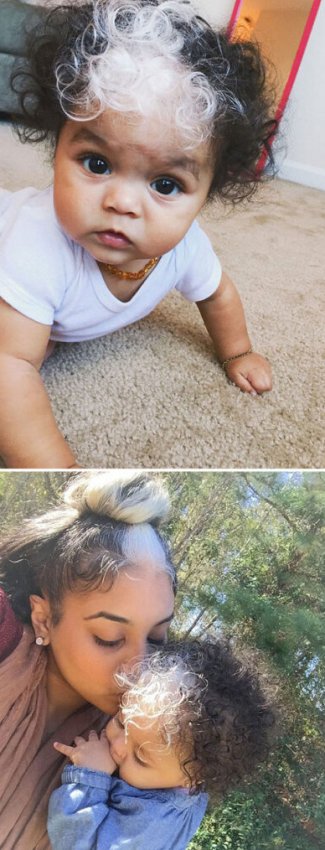 Эта невероятно милая девочка родилась с белым клочком волос, точно таким же, как у ее мамы