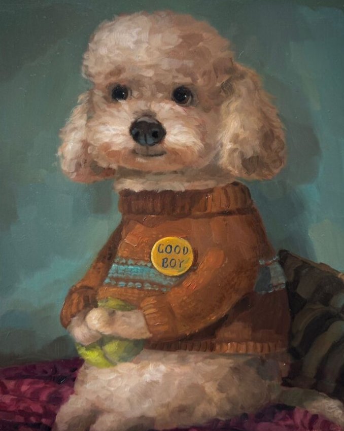 «Я стараюсь поймать те взгляды, которые бросают на нас наши питомцы. Это то, как мы общаемся с животными в нашей жизни. Надеюсь, я привнесу в работу ровно столько, чтобы зритель мог создать свою собственную историю по моей картине. Я хочу, чтобы зритель был частью творческого процесса».