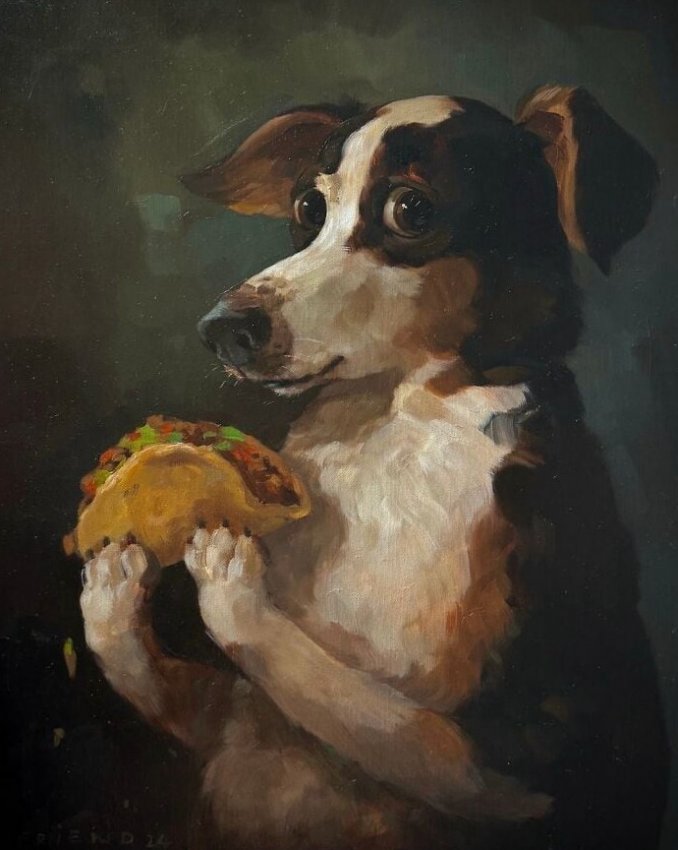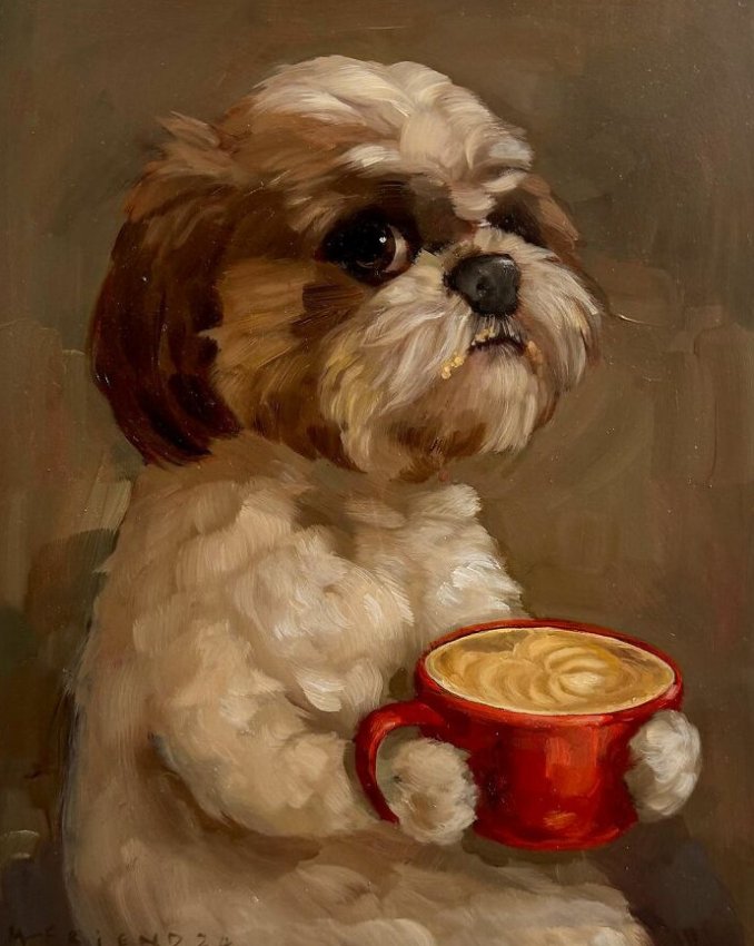 Будь то кошка, наслаждающаяся тарелкой рамэна, или собака, расслабляющаяся в спа-салоне, ее работы приносят радость зрителям и подчеркивают глубокое влияние животных на человеческие эмоции.
