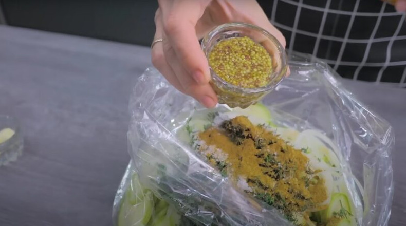 Летнее меню невозможно представить без вкусных и полезных кабачков, из которых можно приготовить огромное количество блюд для всей семьи. Если вы находитесь в поиске нового и оригинального блюда из кабачков для своей кулинарной книги, обязательно попробуйте эту хрустящую и ароматную закуску, на приготовление которой уйдет не более 10 минут. Все, что нужно: нарезать, сложить и перемешать, никакой термической обработки! ВКУСНО и ПОЛЕЗНО/youtube Необходимые ингредиенты: кабачки молодые — 3 шт (700 гр); лук репчатый — 1 шт (80-100 гр); укроп (или любая зелень) — 15-20 гр; чеснок — 2 зубчика; соль — 1 ч.л; сахар — 0,5 ч.л; горчица дижонская — 1 ст.л; уксус яблочный — 3 ст.л; перец чёрный молотый по вкусу; перец красный жгучий 0,3 ч.л. Процесс приготовления Нарежьте кабачки тонкими кружочками: чем тоньше будет нарезка, тем вкуснее получится закуска. ВКУСНО и ПОЛЕЗНО/youtube Нарежьте лук тонкими кольцами, измельчите укроп. В пакет или в пластиковый контейнер выложите подготовленные ингредиенты. Добавьте соль, перец, горчицу, специи, яблочный уксус и чеснок. ВКУСНО и ПОЛЕЗНО/youtube Тщательно перемешайте ингредиенты, чтобы маринад равномерно распределился по всей поверхности кабачков. Положите кабачки в холодильник на 15-20 минут и подавайте летнюю закуску к столу! ВКУСНО и ПОЛЕЗНО/youtube