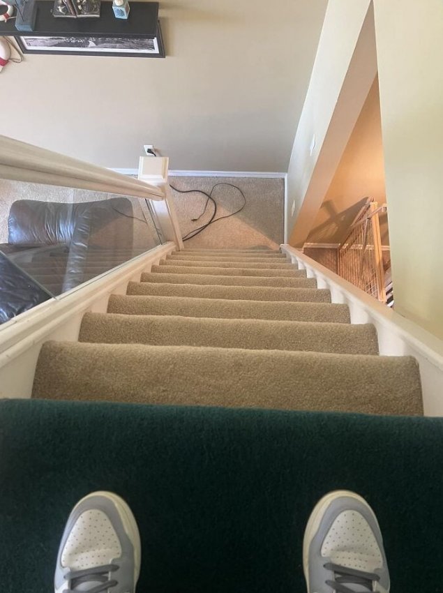 С такой лестнице было бы безопаснее просто сесть и скатиться вниз на попе, как в детстве ?