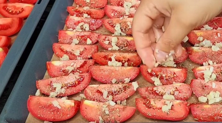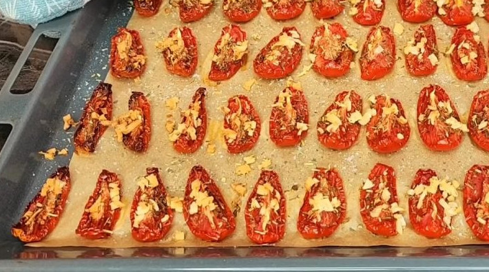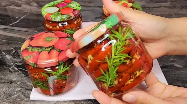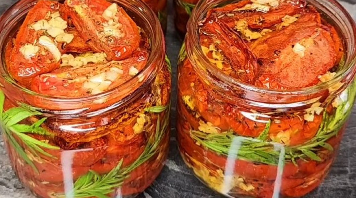 Не торопитесь покупать помидоры зимой, тем более что их вкус далеко не такой, как летом. Цены также бывают чересчур завышенными. Лучше ещё летом сделайте заготовки из помидоров, которых хватит до весны! Это вкусно, просто и экономно. Оригинальный способ сохранить летние помидорки до зимы! Забирайте чудесный рецепт себе в копилку и готовьте для себя и своей семьи. PAZANDA ZAMIRA/youtube Ингредиенты: Помидоры — 2,5 кг; Чеснок — 2 головки; Соль, сахар по вкусу; Специи: тимьянчабрец, прованские травы, розмарин (свежий); Масло оливковое — 300-350 мл. Заготовка из помидоров на зиму Возьмите помидоры Сливка. Помойте, нарежьте на четвертинки. Выложите на пергаментную бумагу. Присыпьте солью, сахаром и специями. Наконец, сверху распределите мелко нарезанный чеснок. PAZANDA ZAMIRA/youtube Отправьте в духовку при 130 градусах на 1 час. Можно поставить сразу 2-3 противня. PAZANDA ZAMIRA/youtube Через час приоткройте дверцу и сушите ещё 1 час. Получится вяленый томат! PAZANDA ZAMIRA/youtube Переложите их в стерилизованные банки вместе с веточками свежего розмарина. Разогрейте масло, залейте сверху. Прикройте стерилизованными крышками. PAZANDA ZAMIRA/youtube Закрутите и отправьте в холодное место на хранение. Это настолько ароматно и вкусно, что сложно описать словами! PAZANDA ZAMIRA/youtube Восхитительная заготовка вяленых томатов, которую так легко приготовить. Запаситесь на зиму настоящей вкуснятиной!
