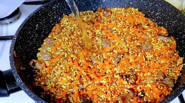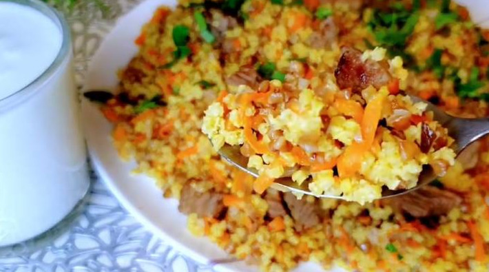 Неожиданно удачное сочетание продуктов! Смешайте пшено 1:1 с гречкой, добавьте овощи и мясо. Получится вкуснейшее сытное блюдо для всей семьи! Готовится в одной сковороде легко и быстро. Попробуйте, возможно, это по-домашнему вкусное и ароматное блюдо приживётся у вас! Strana_Kulinarii/youtube Ингредиенты: пшено — 1 стакан; гречка — 1 стакан; растительное масло; лук (средний) — 1 шт.; морковь — 2 шт.; мясо по вкусу; соль по вкусу; вода — 1 литр; зелень (по желанию). Каша из гречки и пшена с мясом Разогрейте сковороду с 3 ст. л. растительного масла. Всыпьте пшено и гречку 1:1. Обжаривайте на медленном огне около 7-10 минут. Strana_Kulinarii/youtube Переложите пока кашу в миску. Налейте в сковороду растительное масло, обжарьте мелко порезанный лук до золотистости. Затем выложите мясо, обжарьте всё вместе. Strana_Kulinarii/youtube Нарежьте морковь соломкой. Отправьте к мясу и луку, немного потушите. Верните в сковороду гречку с пшеном. Посолите, залейте водой. Накройте крышкой и тушите до полной готовности каши. Strana_Kulinarii/youtube При подаче посыпьте мелко порезанной зеленью по вкусу. Это так вкусно, сытно и необычно! Strana_Kulinarii/youtube Отличная идея обалденного блюда из самых простых продуктов! Готовьте что-то новенькое для своей семьи, и они оценят по достоинству ваши усилия!