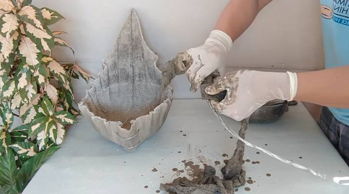 Замачиваю кусок тряпки в цементе. Только взгляните, что за чудо получается - «Своими руками»