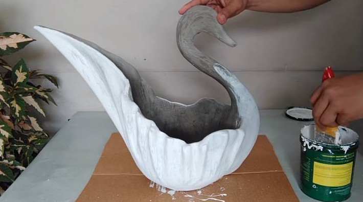 Добавьте ещё несколько штрихов, и всё будет готово! Получилось великолепное кашпо в форме лебедя.