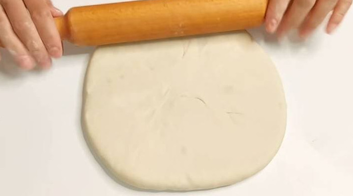 Раскатайте скалкой. Размер должен примерно соответствовать сковороде.