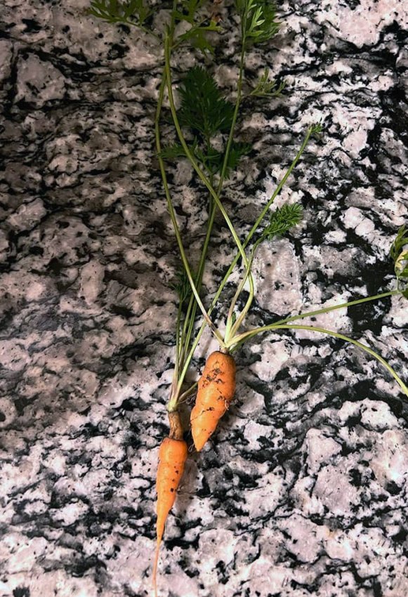 «Жена посадила огромное количество овощей и фруктов на даче этим летом. Эти две морковки были единственным урожаем, который она собрала»