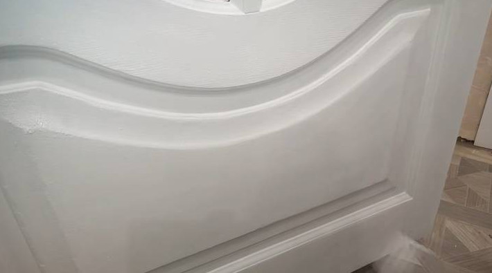 Снимите ручки с двери. Хорошенько помойте и обезжирьте. Если имеются трещины и сколы, закройте их тонким слоем шпатлёвки.