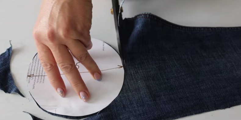 Из джинсовой и подкладочной ткани вырежьте два круга диаметром по 15 см. Сострочите заготовки вместе.