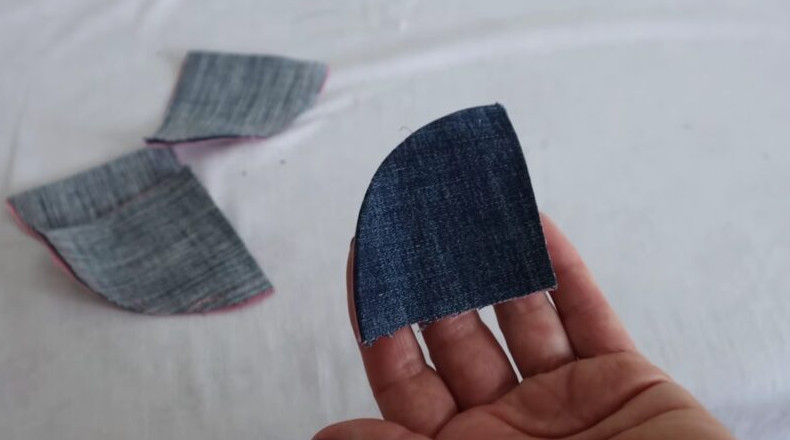Разрежьте круг на 4 части, каждую деталь выверните на лицевую сторону и проутюжьте.