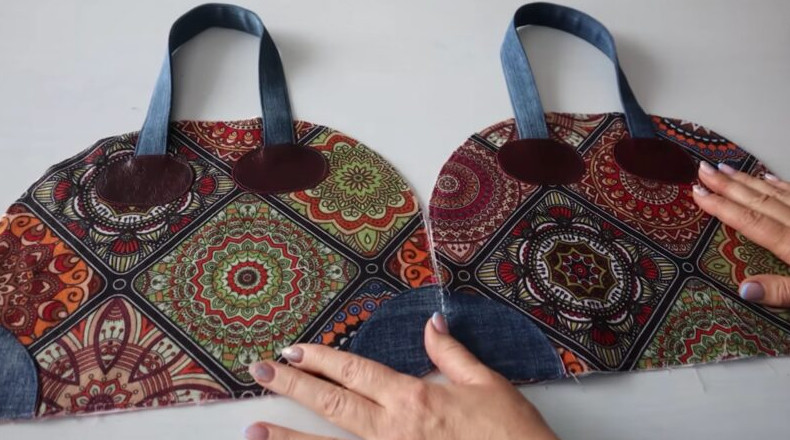 Текстильные сумки — это стильно и удобно! Самое приятное это то, что сшить оригинальную сумку, которую точно не купишь в магазине можно своими руками, используя для работы небольшие отрезы ткани. Следуя подробной инструкции, сделать дизайнерскую сумку сможет даже начинающая мастерица. Необходимые материалы: отрез основной ткани; отрез подкладочной ткани; лоскуты джинсовой ткани; кусочки кожи или кожзаменителя для декора; молния. Процесс работы Из основной ткани (можно, к примеру, использовать старый шарф) выкроите две одинаковые детали размером 26 см х 33 см. С изнаночной стороны укрепите ткань дублерином. Края деталей необходимо закруглить, сделать это удобно с помощью картонных кругов. Для этого потребуется два шаблона: круг диаметром 6 см и круг диаметром 28 см. Нижнюю часть заготовок закруглите с помощью маленького круга, а верхнюю — с помощью большого. Мастерим Руками/youtube Выкроите аналогичные детали из подкладочной ткани. Мастерим Руками/youtube Для изготовления карманов подготовьте два отреза подкладочной ткани размером 37 см х 16 см. Верхний край подверните на 1 см. Наложите деталь кармана на деталь из подкладочной ткани, посередине проложите разделительную строчку. Излишки ткани срежьте. Соедините основную деталь и деталь из подкладочной ткани. Мастерим Руками/youtube Из джинсовой и подкладочной ткани вырежьте два круга диаметром по 15 см. Сострочите заготовки вместе. Мастерим Руками/youtube Разрежьте круг на 4 части, каждую деталь выверните на лицевую сторону и проутюжьте. Мастерим Руками/youtube Пристрочите заготовки к нижним углам основных деталей. Мастерим Руками/youtube Для изготовления ручек потребуются полосы джинсовой ткани размером 10 см х 45 см. Дважды сложите полосу ткани к центру и проложите фиксирующую строчку. На деталях сумки сверху посередине отложите вниз 5 см и проведите поперечную линию длиной 8 см. По краям этого отрезка пристрочите ручки. Мастерим Руками/youtube При желании сумку можно дополнить декоративными элементами — кожаными овалами, которые также выступят в качестве дополнительного фиксатора для ручек сумки. Мастерим Руками/youtube Из основной и подкладочной ткани выкроите по 2 полосы длиной 44 см х 5 см каждая. Полосы из основной ткани укрепите дублерином. Между полосой основной и подкладочной ткани вставьте по половине молнии. При желании по коротким сторонам пристрочите петли, которые потом можно будет использовать для крепления длинной ручки. Мастерим Руками/youtube Из подкладочной и джинсовой ткани выкроите детали для изготовления верхней части сумки. Мастерим Руками/youtube Поместите деталь с молнией между двумя заготовками и проложите фиксирующие строчки. В результате получится средняя часть сумки. Мастерим Руками/youtube К средней детали приложите основную часть с ручками и проложите фиксирующие строчки. Аналогичные действия повторите со второй боковой деталью. Швы подравняйте и обработайте косой бейкой. Готовая сумка выглядит очень компактно и аккуратно, но при этом она довольно вместительная и удобная. Мастерим Руками/youtube