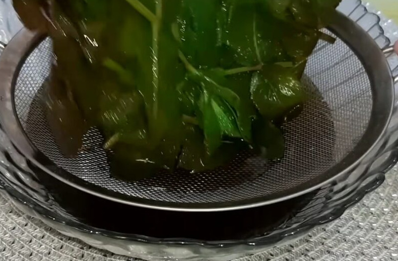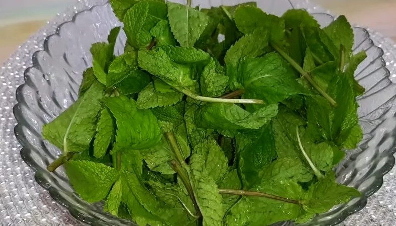 Залейте листочки мяты вместе со стеблями кипятком. Накройте кастрюлю крышкой и оставьте мяту настаиваться при комнатной температуре (если не очень жарко), либо в холодильнике на сутки.