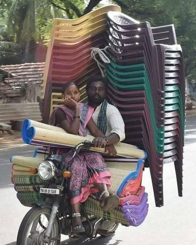 Можно долго восхищаться количеством вещей, которые азиаты могут сложить на мотоцикл.