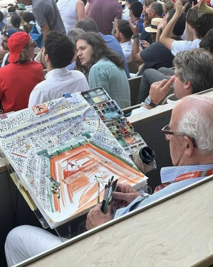 Этот человек рисовал теннисный матч, который он смотрел