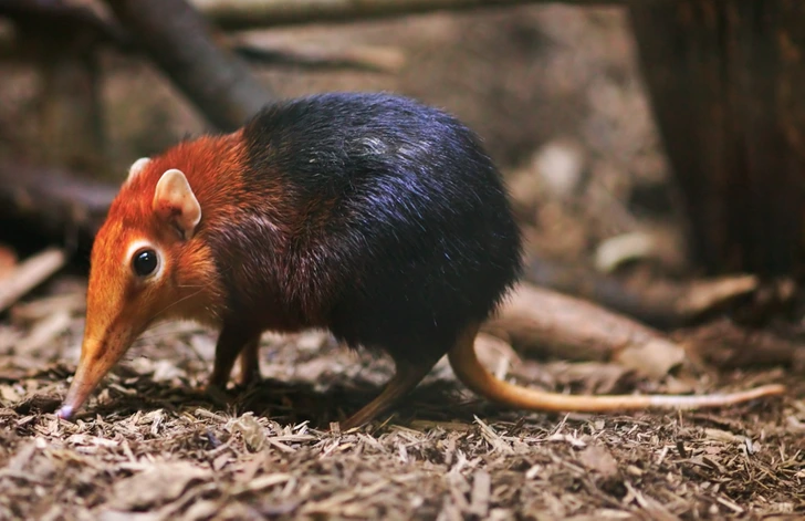 Черно-рыжая слоновая землеройка использует свой нос, чтобы выкапывать насекомых из земли