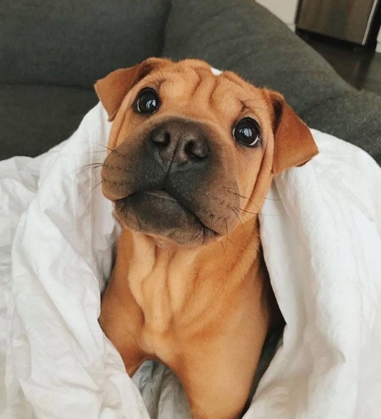 Этот помесь шарпея и бульдога выглядит очень обеспокоенным