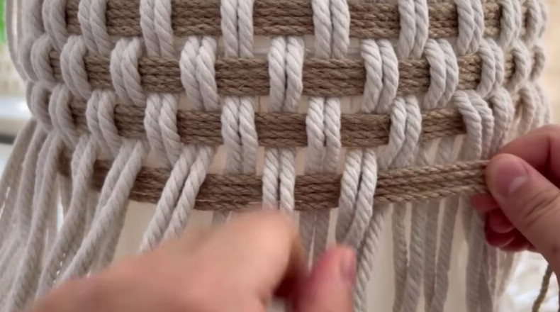 Сделайте красивое плетение, используя сложенный в несколько раз шнур контрастного цвета.
