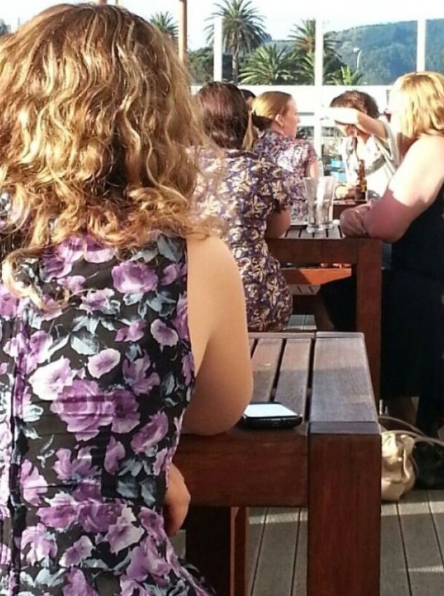 «Сегодня в кафе эти женщины были одеты в одинаковые цветочные фиолетовые платья»