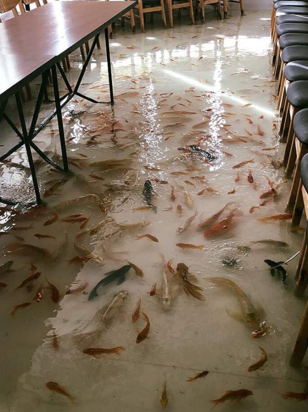 Кафе мечты или аквариум? Как посетители вьетнамского кафе буквально плавают с рыбками - «Своими руками»