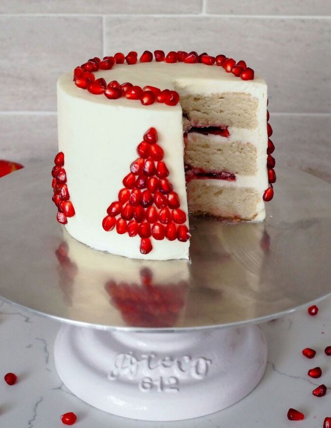 «Я использовала зерна граната, чтобы сделать рождественские елки по бокам этого гранатового торта, и получилось очень мило!»