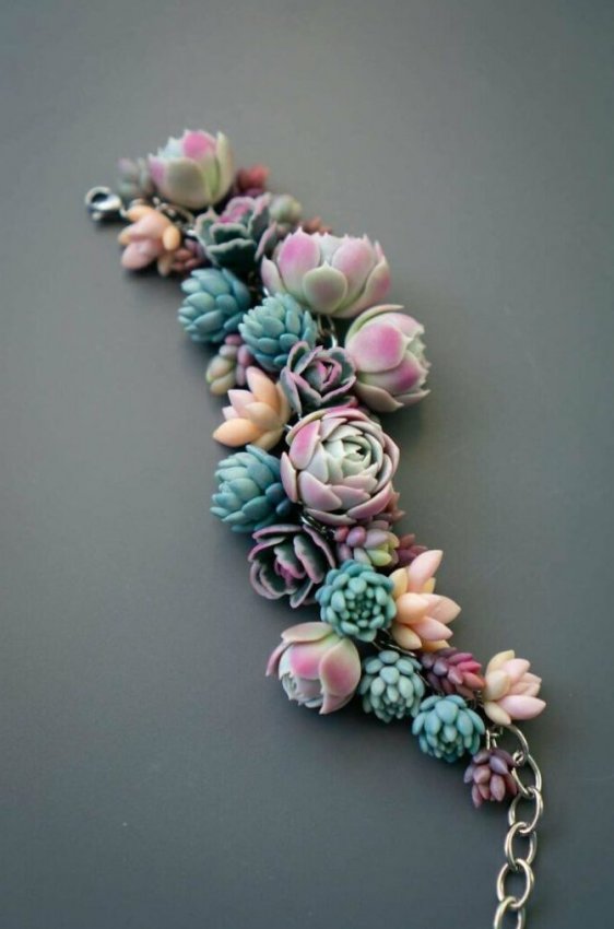 «Я сделала новый браслет суккулентов из полимерной глины. Реалистичный и очень прочный!»
