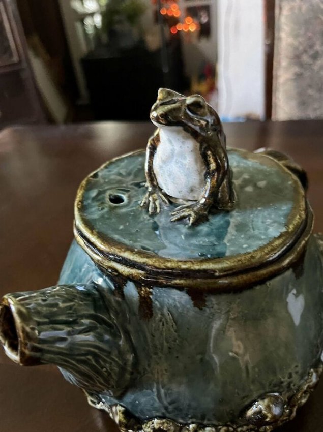 «Мой чайный сервиз с изображением жабы наконец-то вынут из печи! Ура!»