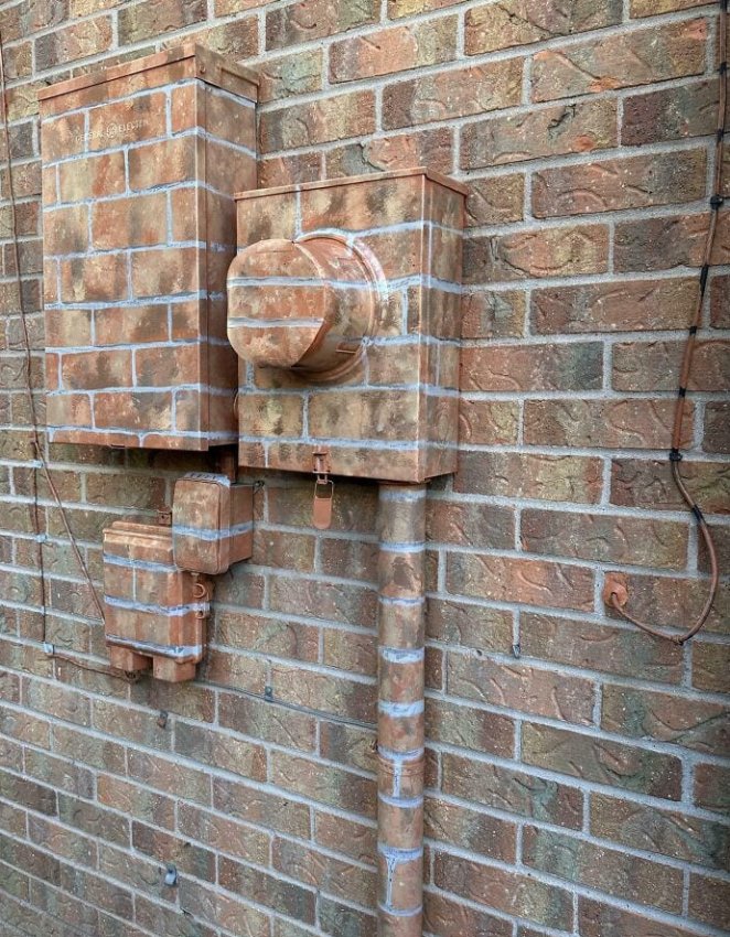 «Окрашенные электрические коробки под цвет кирпича»