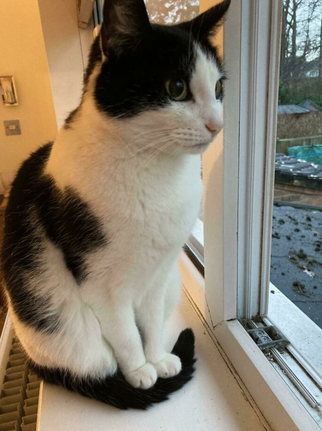 «Наша кошка Мия кладет передние лапы на хвост, чтобы они не касались холодной поверхности»