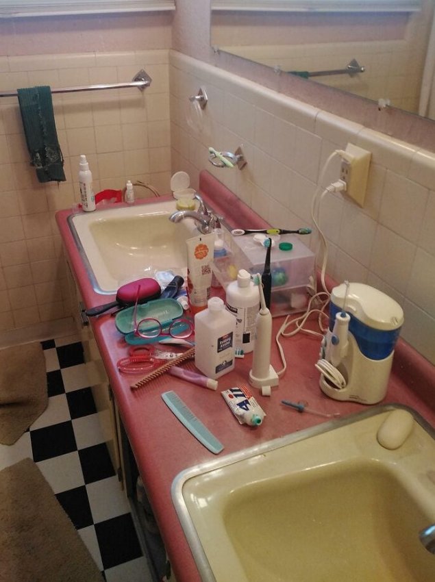 «Как выглядит ванная комната через два дня после того, как моя сестра вернулась из колледжа»