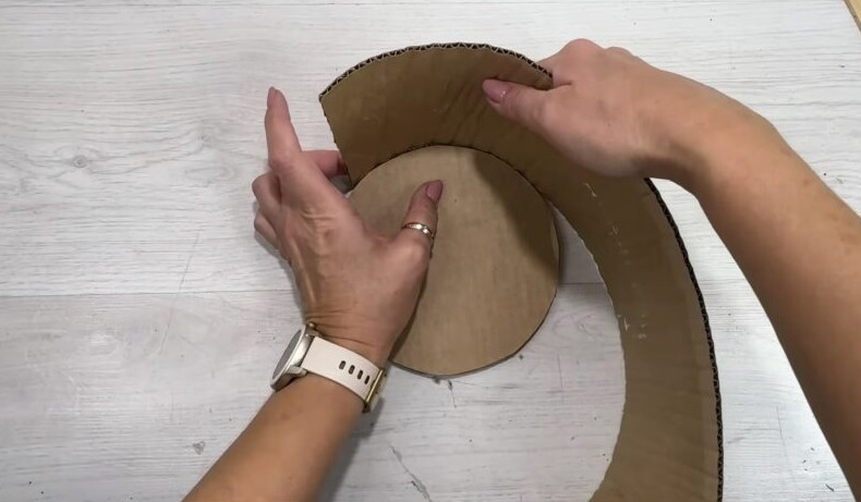 Дно лучше сделать двойным для большей прочности. Приклейте стенку к донышку, при необходимости слегка согните картон.