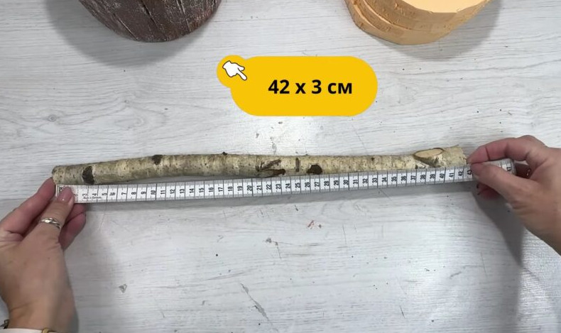 Внутри вазона разместите круги из пеноплекса, в которых будет располагаться ствол ёлочки. Для ствола отлично подойдет красивая ветка дерева.