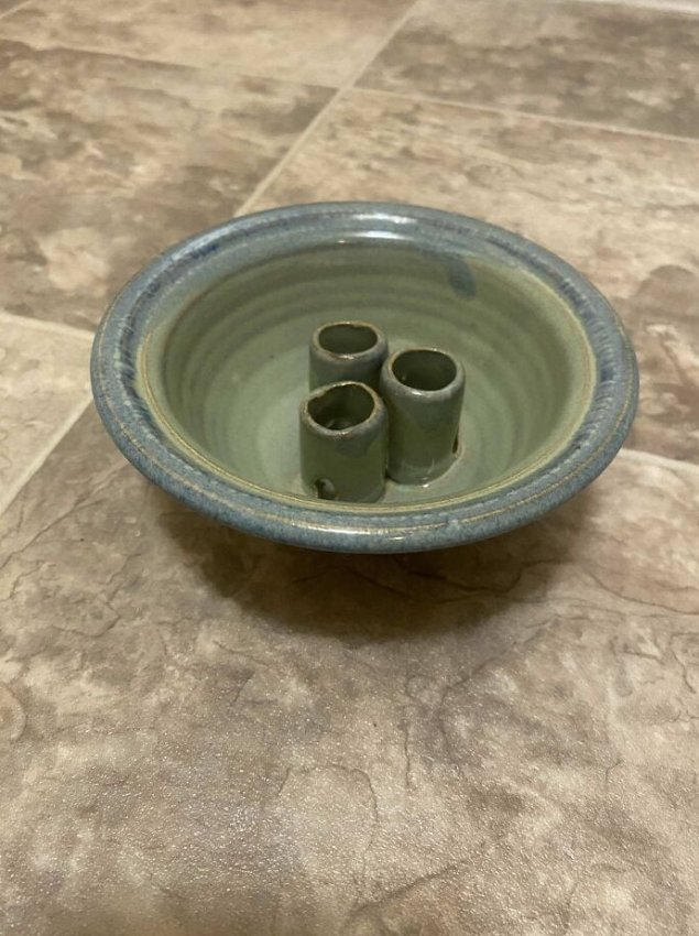 Маленькая керамическая миска с тремя маленькими конусами в середине