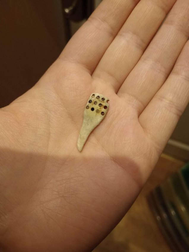 Ну что, догадались? Это викторианская зубная щетка. Ручка сделана из кости животного, а отверстия — это места, куда вставлялась щетина (обычно свиной или конский волос). Такие щетинистые зубные щетки были изобретены в Китае в 1400-х годах.