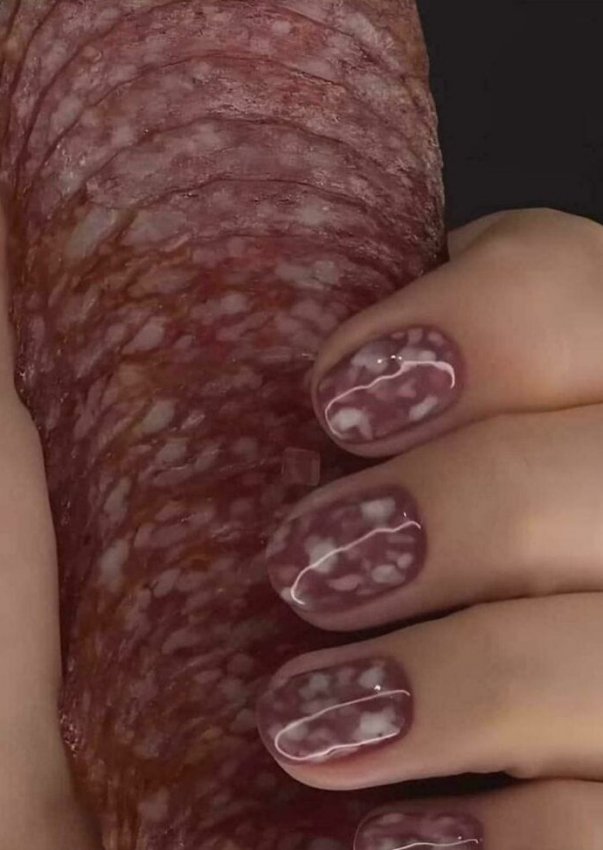 Сами по себе они, конечно, не самые вопиющие ногти, которые мы видели… но пепперони в качестве отсылки здесь действительно странновато.