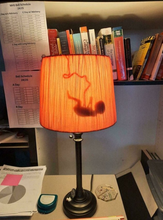 Эта лампа явно напоминает: Ты был здесь до того, как это стало модным. Отличный способ напугать гостей перед сном!