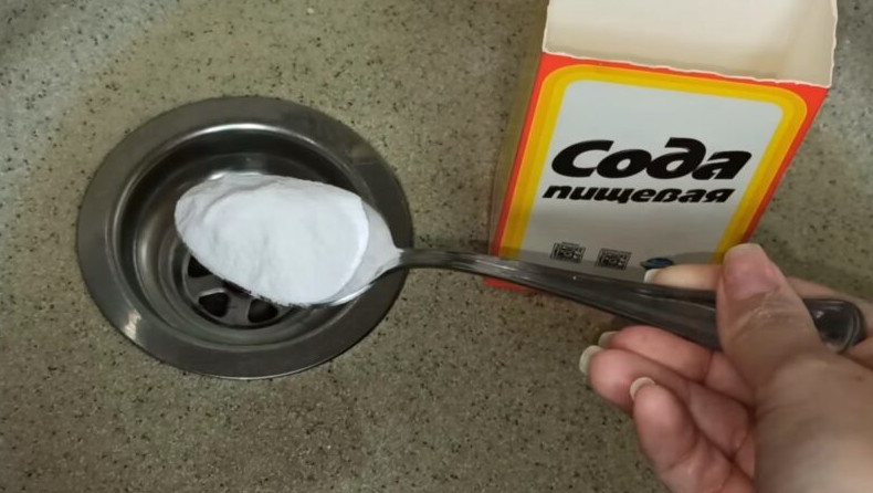 Насыпьте в слив раковины одну столовую ложку пищевой соды.