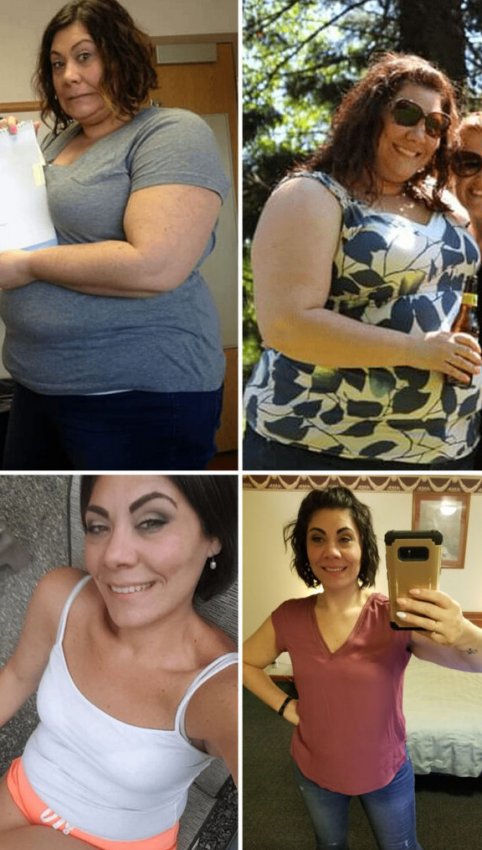 «Я похудела с 270 кг до 86 кг! С тех пор я достиг своего желаемого веса и удалил часть дряблой кожи на животе и шее. Я действительно чувствую себя другим человеком! Я набрал вес после 6 лет абьюзивных отношений и был в тяжелой депрессии. Перестал ходить на занятия и видеться с семьей и друзьями. Потом я начал ходить на терапию и научился подсчитывать калории и готовить правильную еду.»