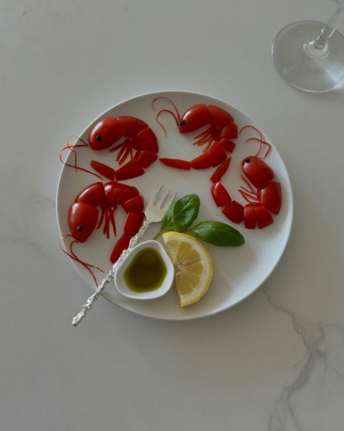 Кто бы мог подумать, что томаты могут быть такими морскими! Эти «креветки» выглядят так аппетитно, что хочется заказать себе целую тарелку.