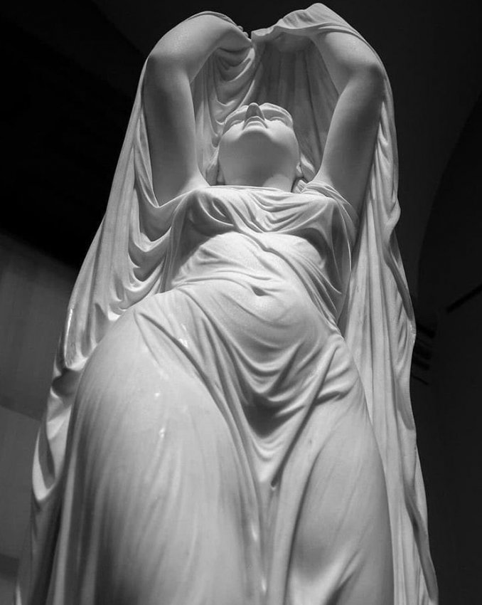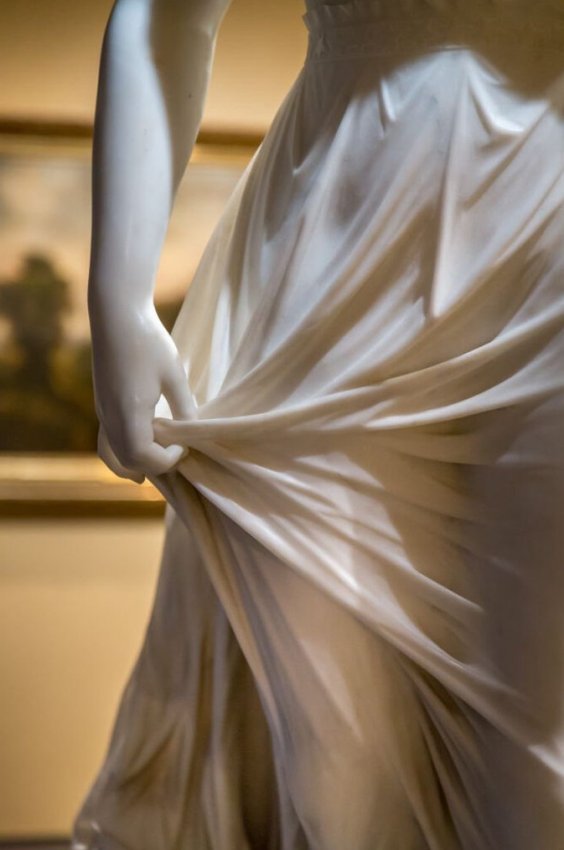 Американский скульптор XIX века сумел передать эффект лёгкой ткани, развевающейся на ветру, в тяжёлом камне.