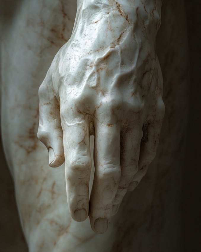 Современный итальянский мастер показывает невероятную игру светотени и текстуры, делая мрамор «живым» и пульсирующим.