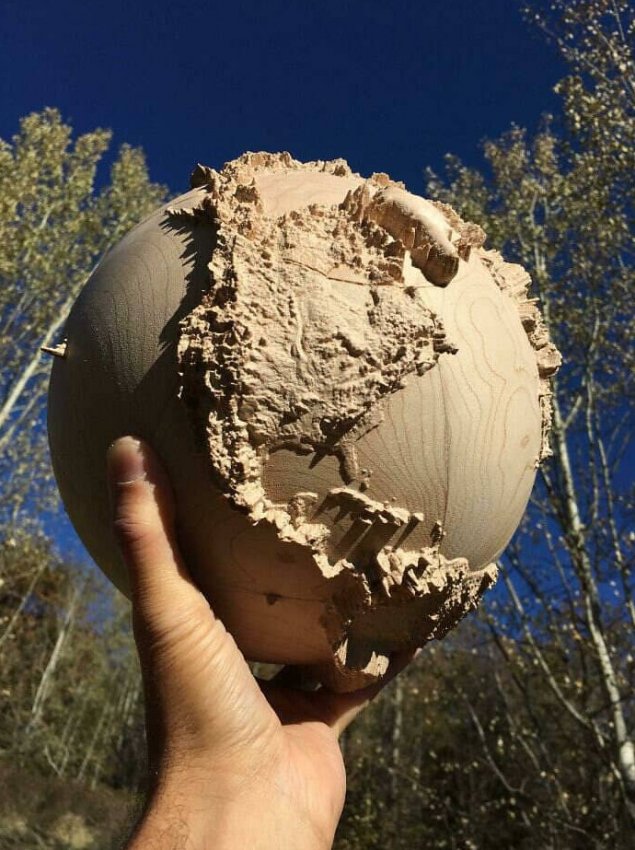 «Я наконец-то закончил свой вырезанный из дерева глобус!»